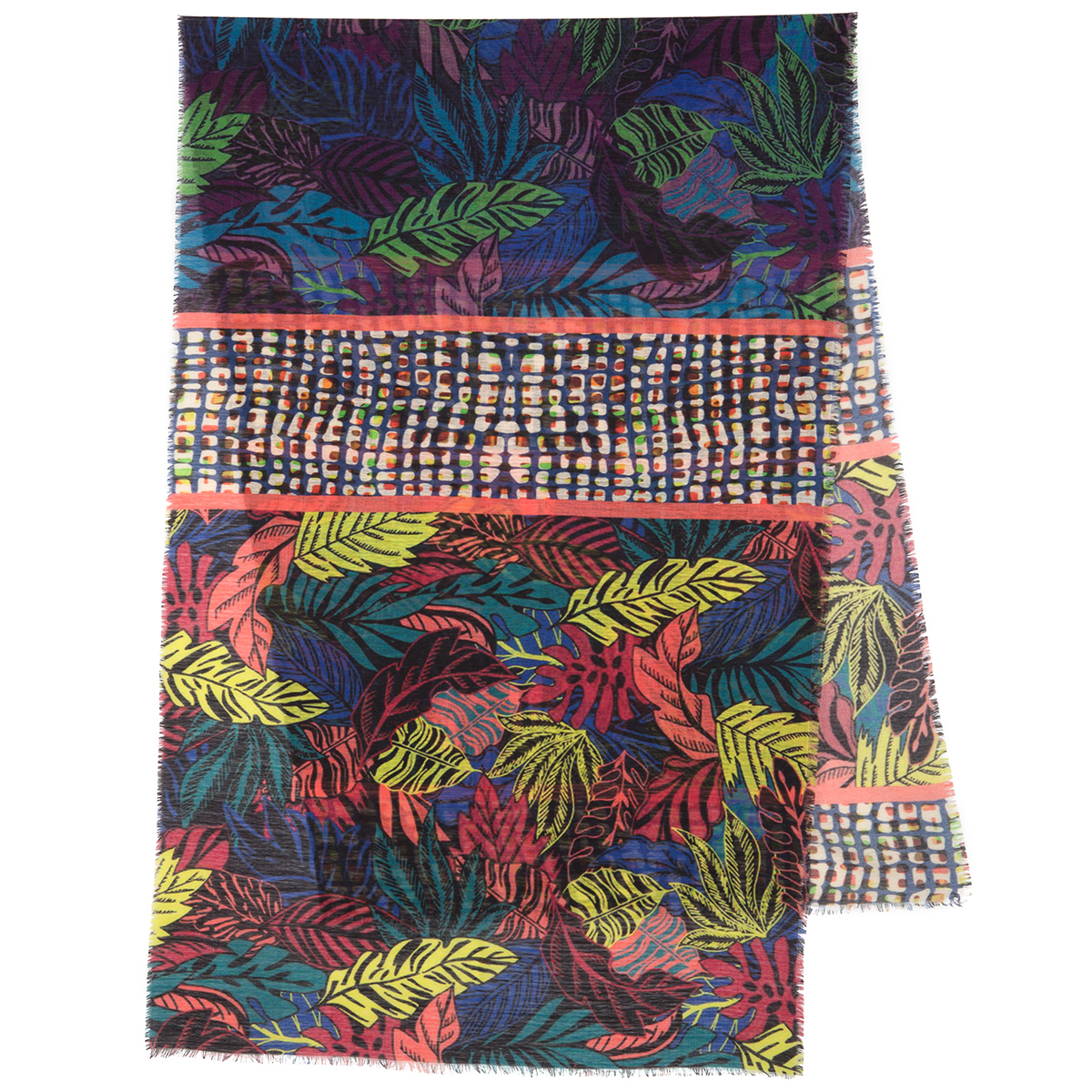 Палантин шерстяной набивной, разреженная ткань, 80х230 см