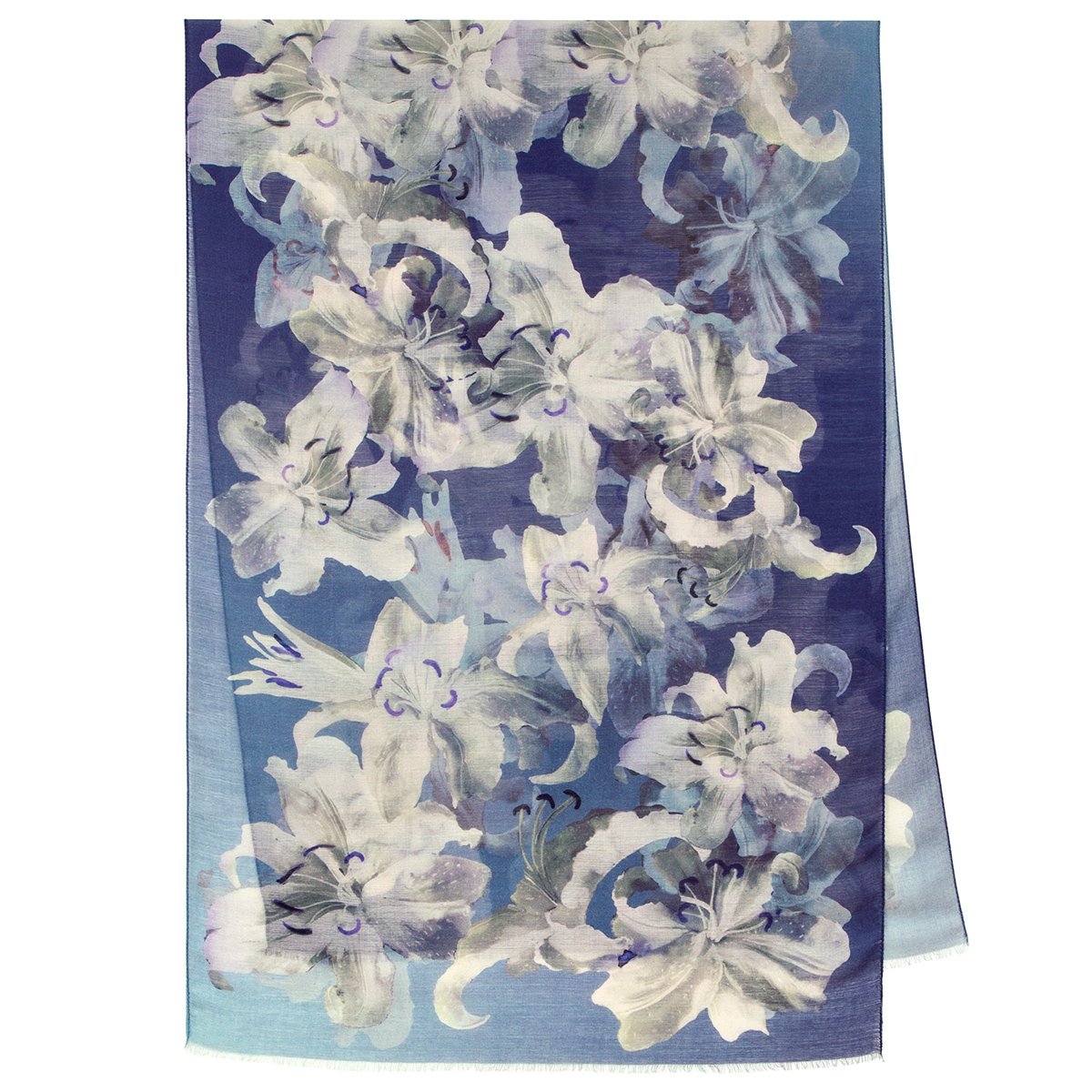 Палантин шерстяной набивной, 80х230 см. Палантины из легкой сильно разреженной ткани. По длинной стороне оформлены подрубкой со швом типа "зиг-заг" или осыпкой с перевивкой кромки, по короткой - осыпкой.