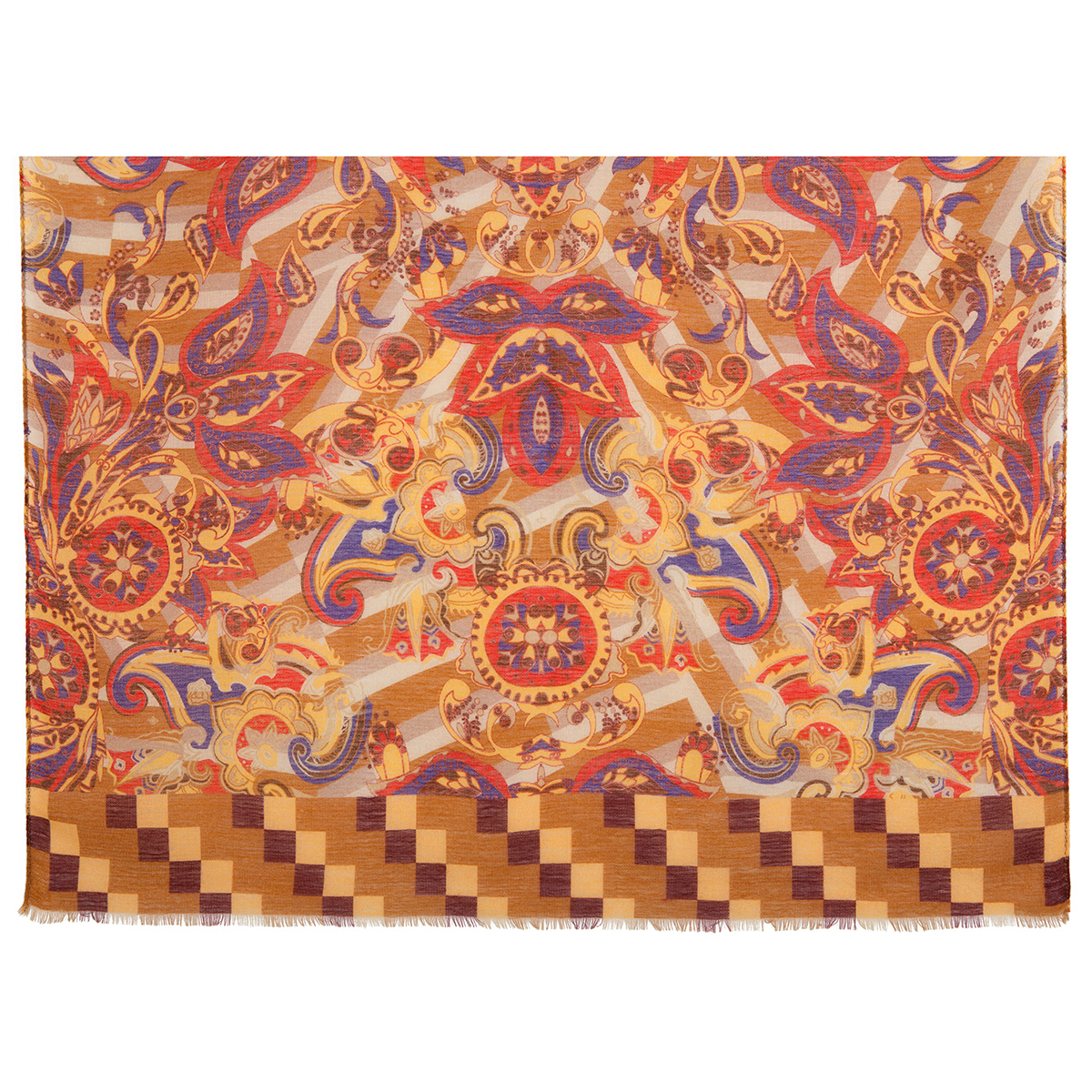 Палантин шерстяной набивной, разреженная ткань, 80х230 см