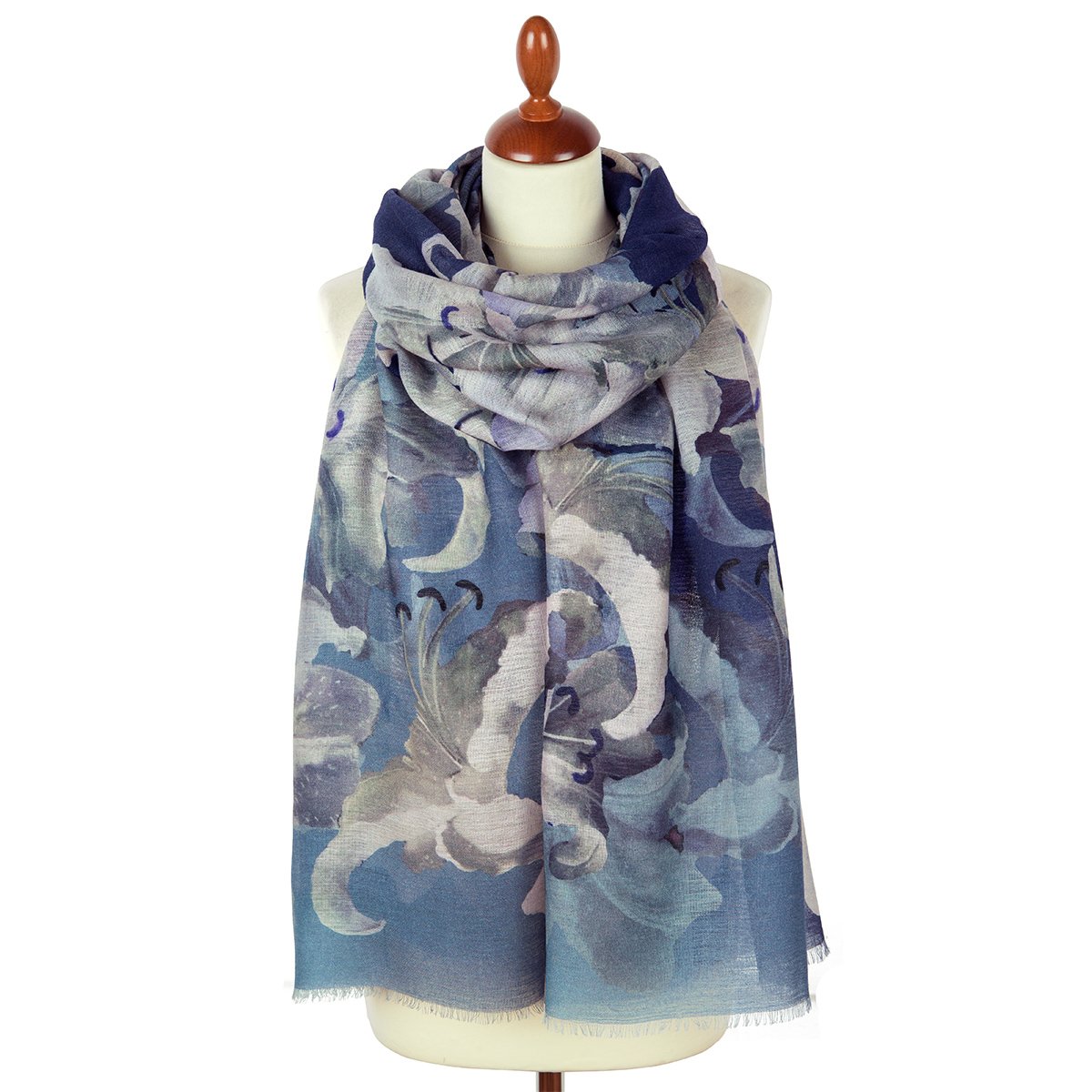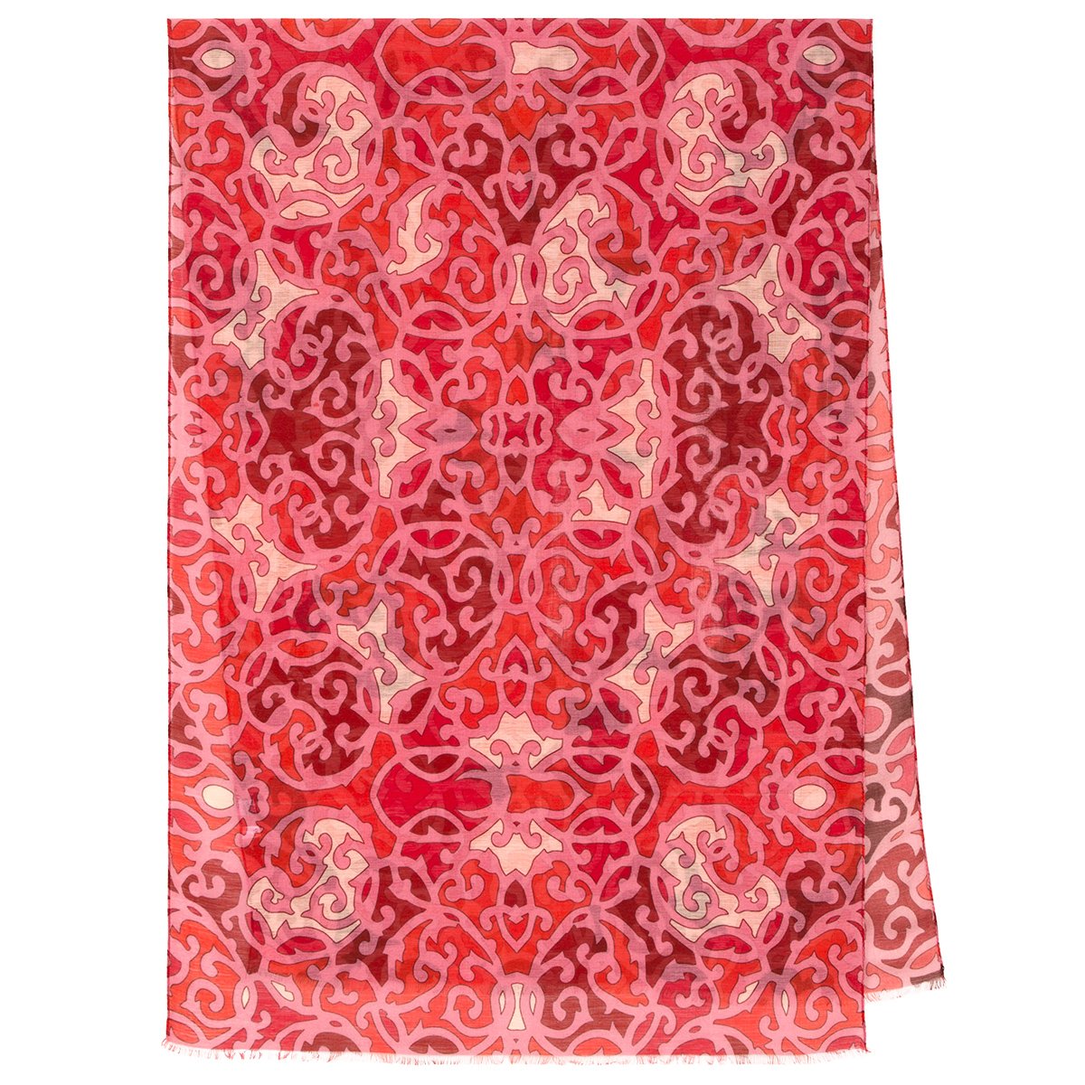 Палантин шерстяной набивной, 80х230 см. Палантины из легкой сильно разреженной ткани. По длинной стороне оформлены подрубкой со швом типа "зиг-заг" или осыпкой с перевивкой кромки, по короткой - осыпкой.