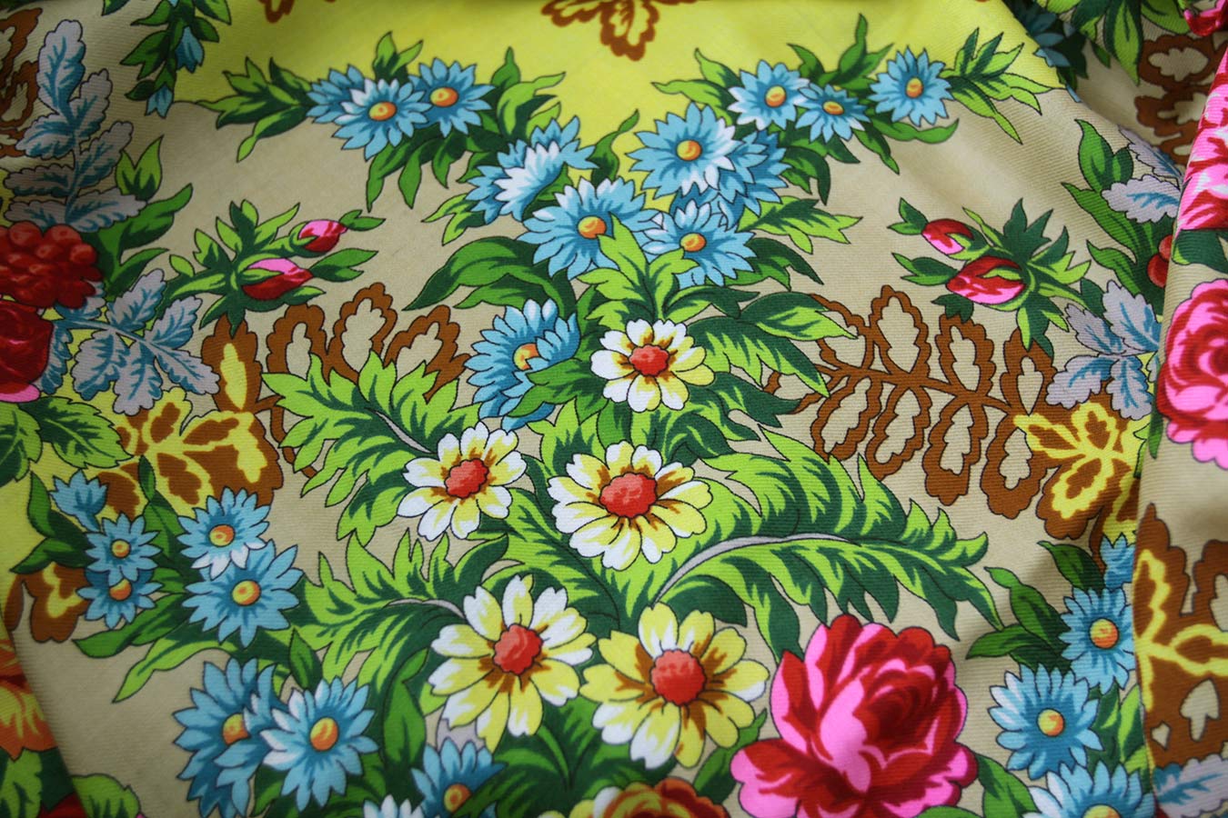 Жалко, если платки с просновками уйдут и их больше не будут выпускать. Есть особая красота в этой незаполненности поля рисунком, особенно в свете современных тенденций фабрики заполнить все поле мелкой вязью, в игре просновок. А какая была ткань, мягкая, шелковистая.