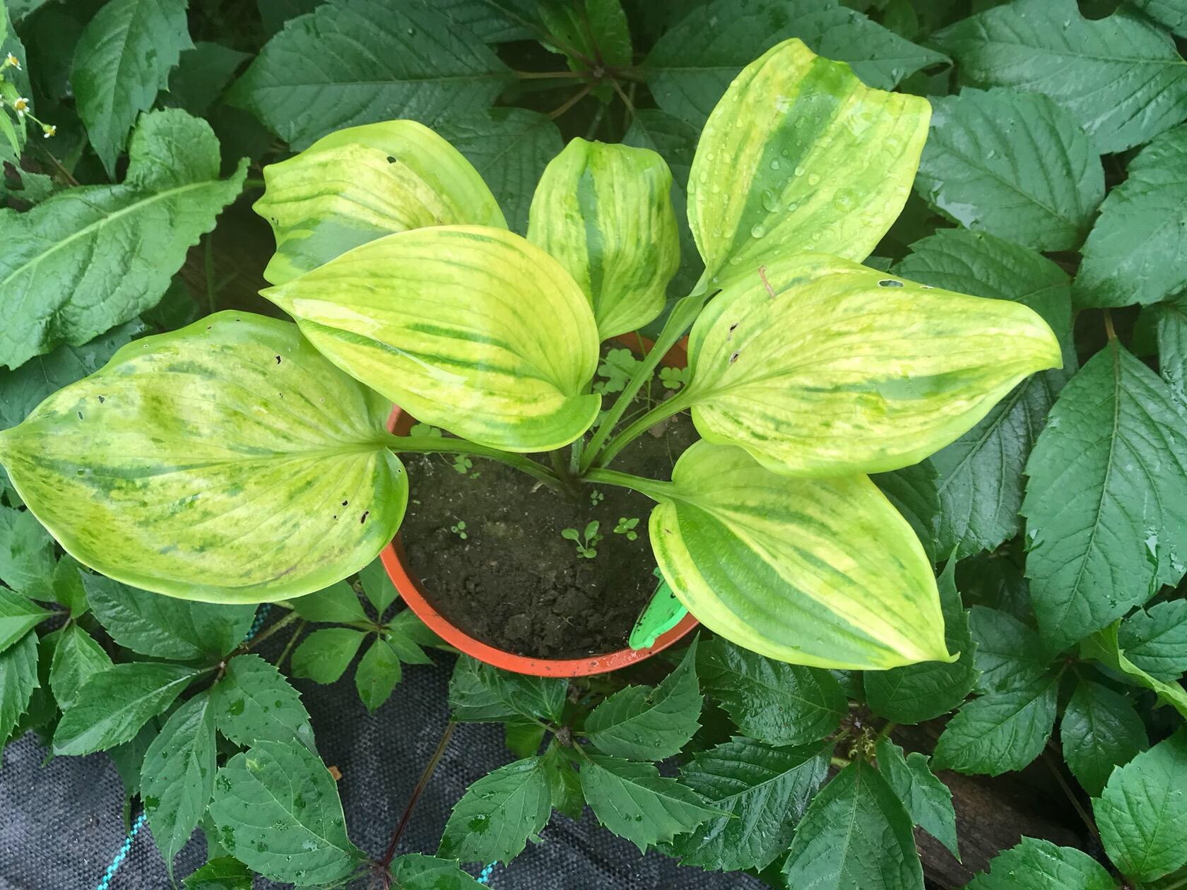 А хосты растут в горшках. Под навесом из фасадной сетки.На зимовку прикапываю в грунт.Мне так удобнее сохранить коллекцию и ухаживать. В миксах, сложно выращивать без потерь. Кротыыыыы, слизни и солнце...