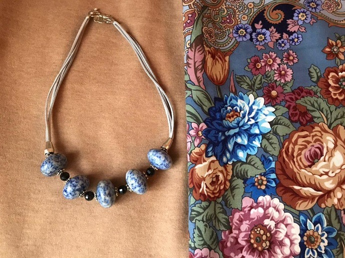 Крупные бусы-колье. Покупала как лазуриты. Мне кажется, что больше похожи на содалиты. Мне нравится как они ложатся на светло серые и песочные оттенки. Долго думала с чем носить. Решила носить с Радоницей 14.