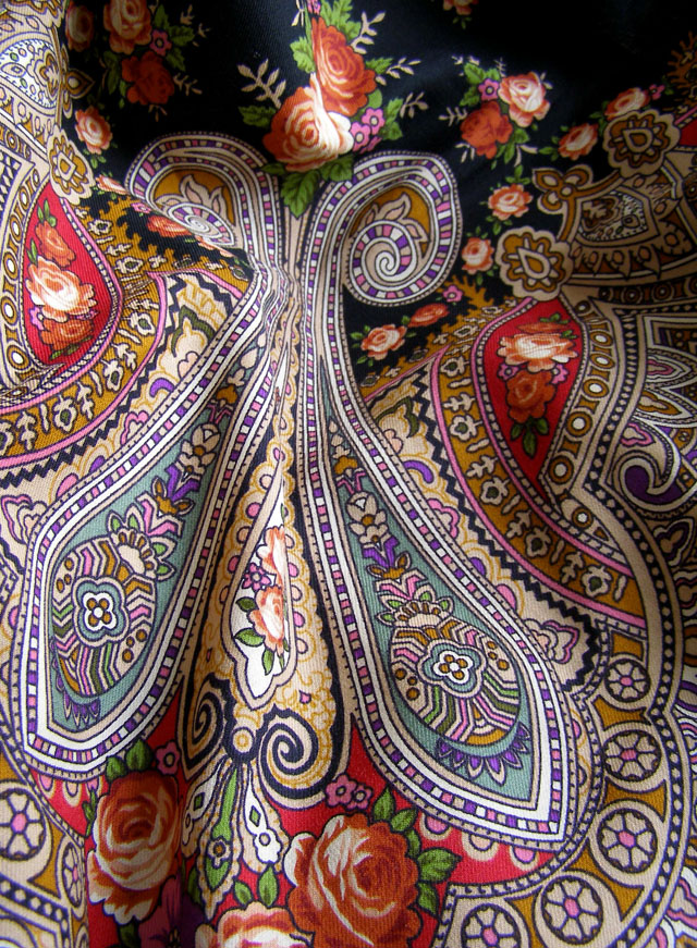 А вот цвет меня малость разочаровал. Я его покупала для этого платья, но сюда эта шаль не годится - слишком тускловато всё.