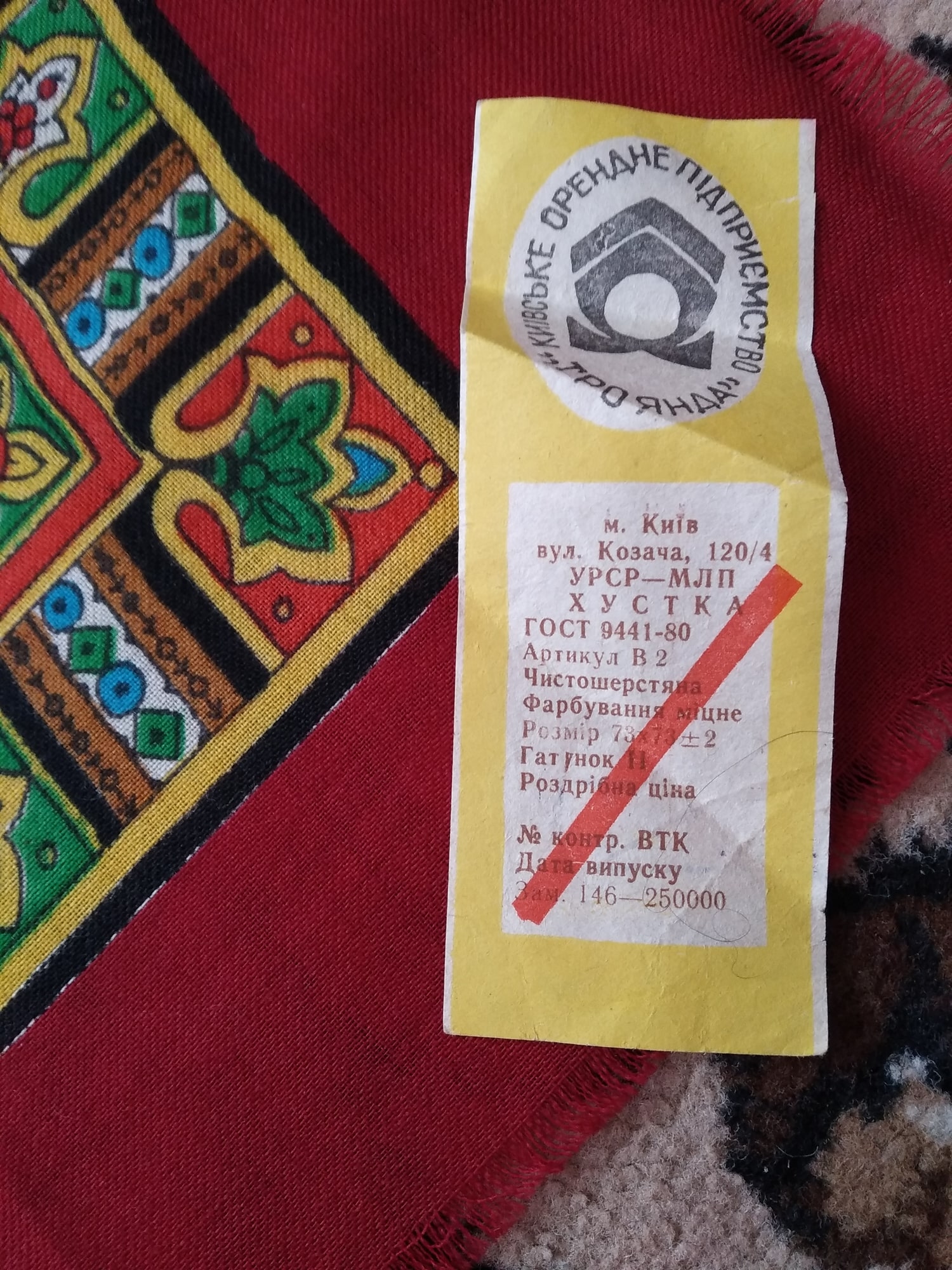 А этот платочек шерстяной, но тоже с остатками этикетки