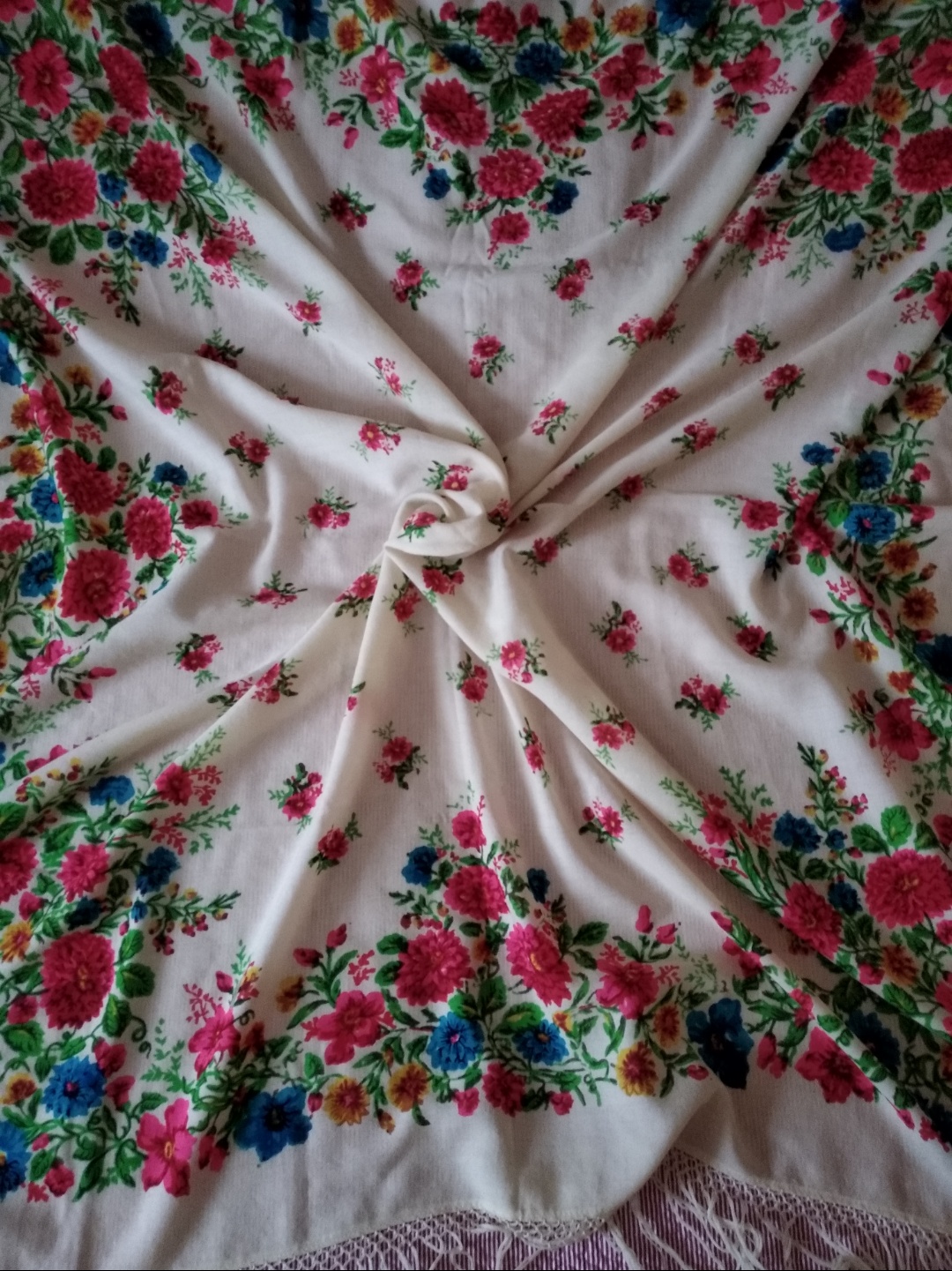 Прототип Ситцевого края, автор Н.Г. Чудин. Шаль 148×148 см.