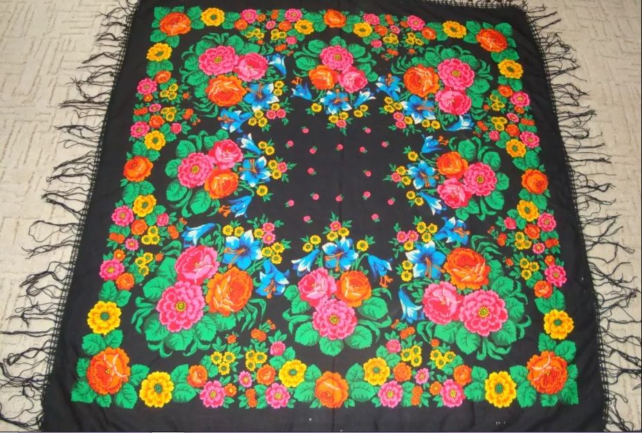 уже не первый раз попадается мне этот платок (148) все на том же (ОЛХ)(Кликните, чтобы почитать, что спрятано под катом)... приписывают авторство Регуновой, в одном месте называют "Палех"...честно не нашла ни в гелерее Регуновой ни в "сундуке"(Букеты. Гирлянды)
