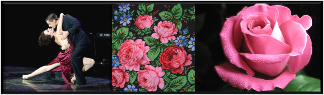 На павловопосадских платках чудесным образом расцветают букеты роз, играющие всеми цветами радуги. Букеты роз могут располагаться по центру, по краям, по кругу или по углам платка. И количество роз в букете бывает разным. Но всегда это красиво и изящно.