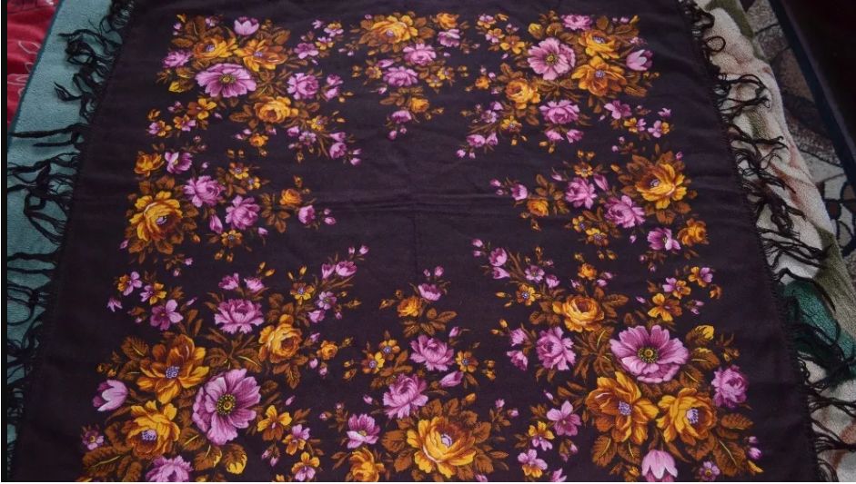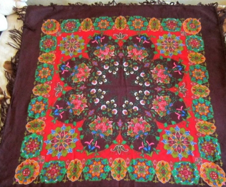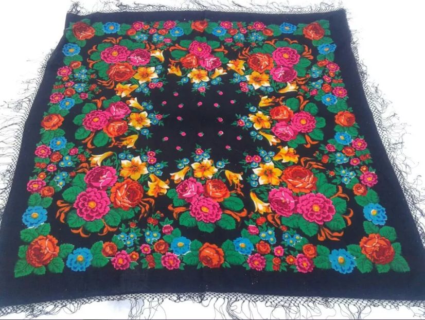 уже не первый раз попадается мне этот платок (148) все на том же (ОЛХ)(Кликните, чтобы почитать, что спрятано под катом)... приписывают авторство Регуновой, в одном месте называют "Палех"...честно не нашла ни в гелерее Регуновой ни в "сундуке"(Букеты. Гирлянды)