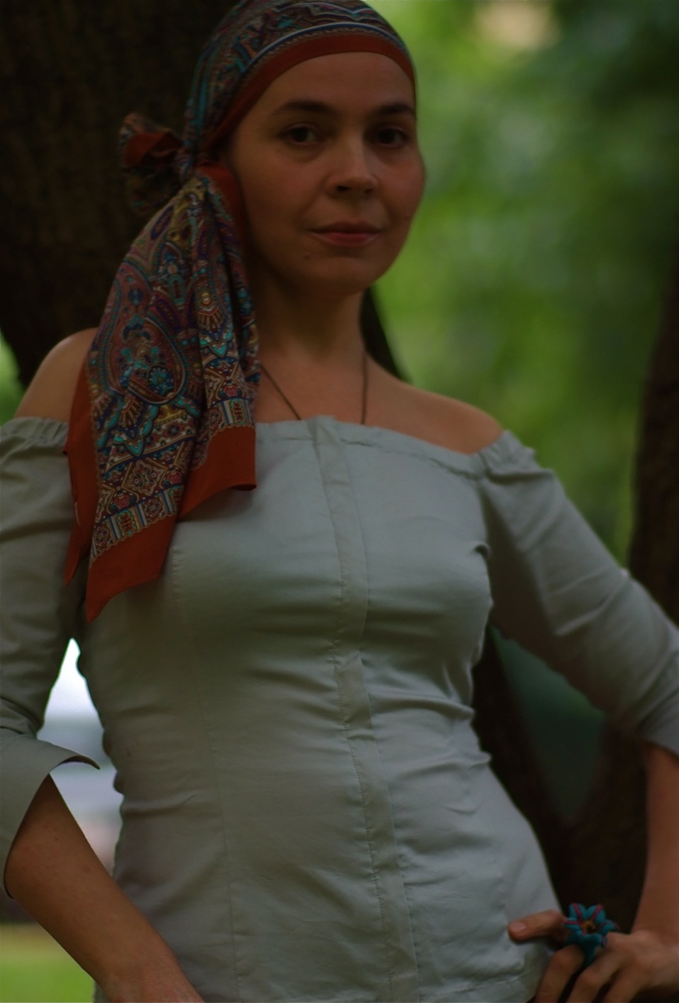 Добро, шарфик на голову пристроить попытки были. Проблемы такие же, как и с платочками - сползают