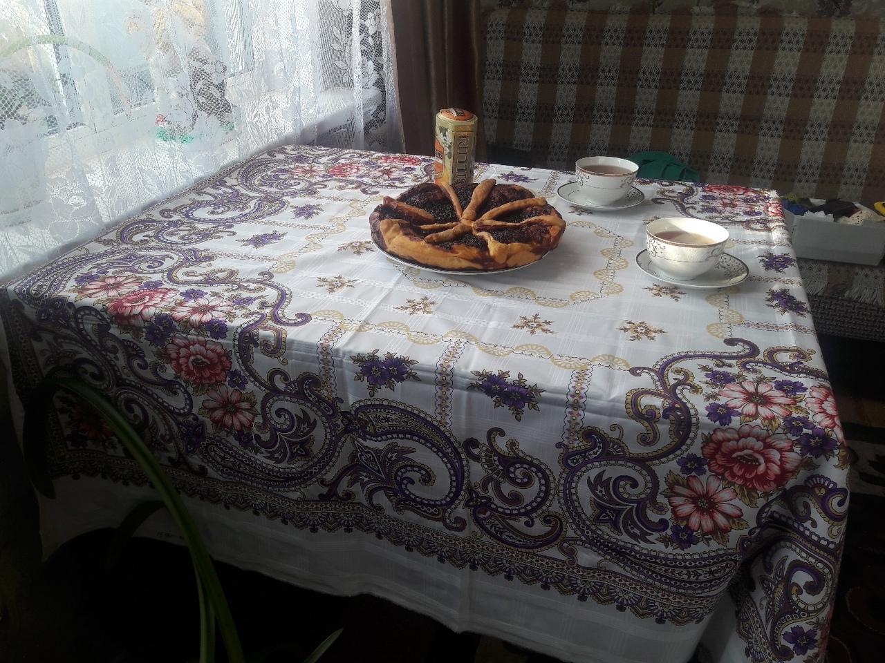 Какие Тёщины посиделки! И пирог им в тему. Пряха, отличное фото, познавательное. Чувствую, становлюсь фанатом ППМ скатертей. Но только тех, прежних, без компьютера нарисованных. Надо забирать, пока не ушли.
