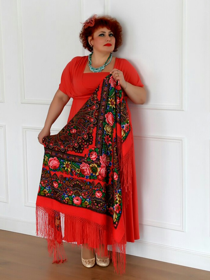 Демонстрируем ношение платков и шалей.