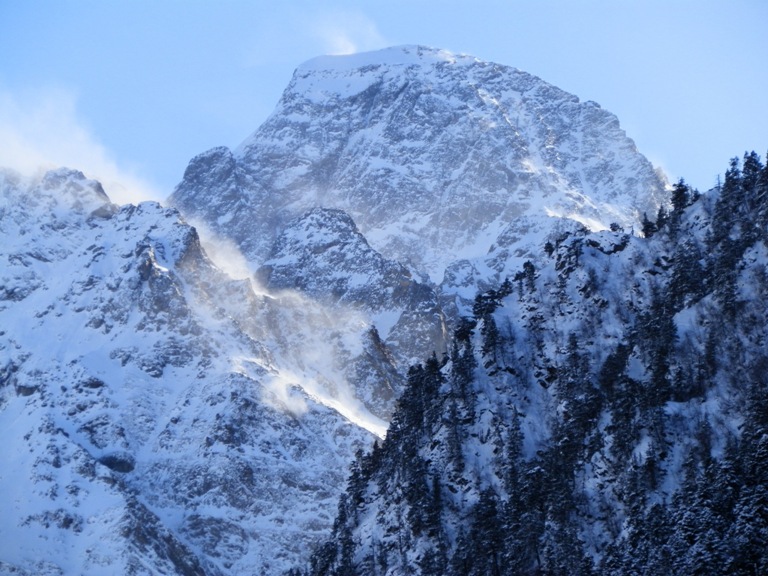 Яркие бахилы на наших ногах защищают от того, чтобы внутрь обуви засыпался снег. Палки помогают разгрузить ноги. Ну а в рюкзаках палатки и все остальное для жилья на воле. Страшного почти ничего нет в этом мероприятии, если не считать, что голоса шакалов мы приняли за волков. А еще был момент, когда в долине заблудился хвост какого-то ветра. Мы спали в своих палатках, поставленных в пастушьем домике, ветер выбил окно, и больше не было о нем ни слуху ни духу, ни до ни после.
