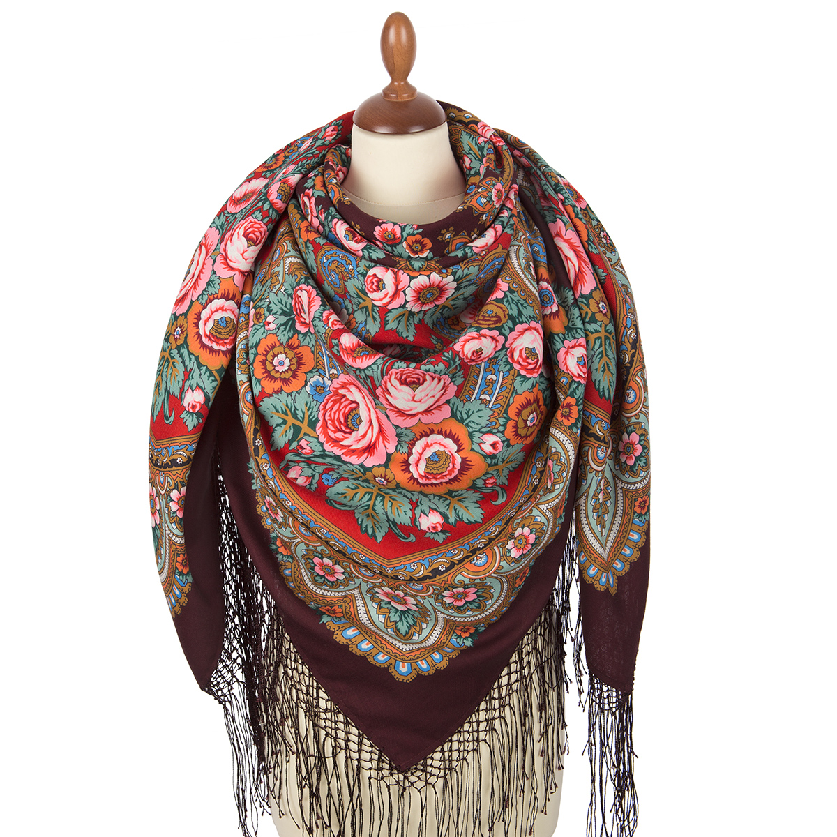 СОЛОВУШКА 1893. Платок шерстяной с шелковой бахромой, 89x89 см. Выпуск 2019 г.