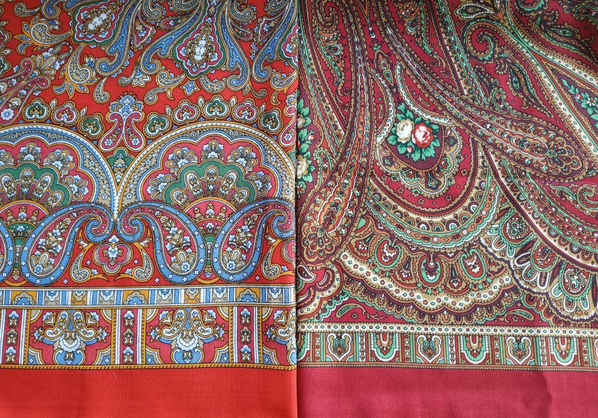 Слева шаль «Русские сезоны» 948-14, сорт 1, печать 15.03.2019 г. Художник: Белокур Наталья;