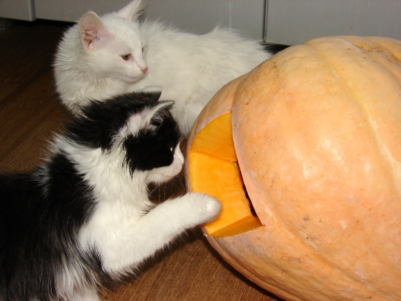 Наши кошки всегда проверяют-нет ли кого чужого пусть даже и в тыкве