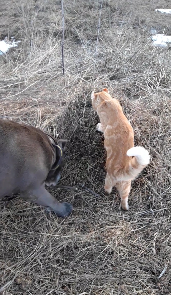 Недалеко мы давно вместе ходим: утром и вечером Борз идет гулять и Симба тоже. Когда поначалу кот пытался в сторону срулить я хитрила - играла с ним поводком, и он бежал за ним до самого дома. Так изучили ближайшие окресности. А вот когда в дальний поход увязался, боялась, что он удерет куда -нибудь, ошалев от соблазнов. Решила рискнуть, он у меня приучен на хлопки, также как и пес. Муж меня отругал, мол, слишком хорошо про кота думаешь. Но когда увидел как котя идет развел руками. Честно надо сказать что Симба не охотник совсем, он домашний. И думаю что кот не столько с нами идет сколько с псом, он все за Борзом повторяет, а Борз ведь не убегает. Он даже нюхает все то же что и собака))