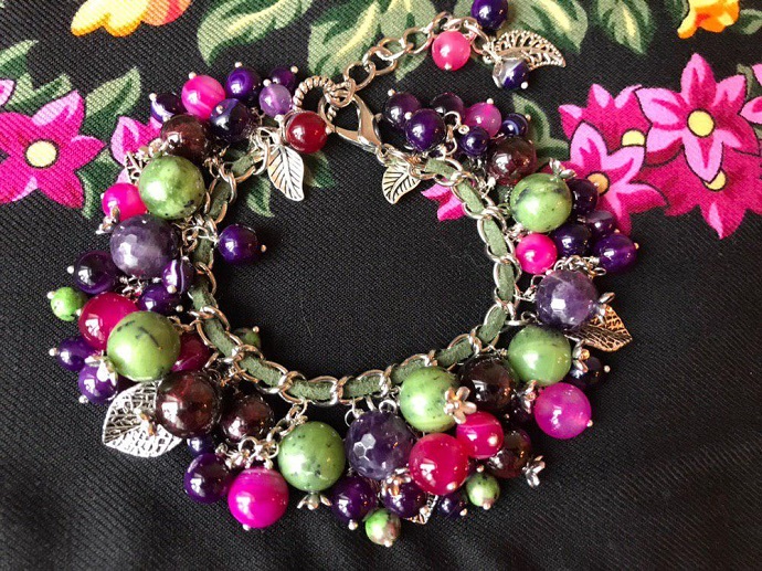 Скоро праздник и к празднику сделала браслет из аметистов, нефрита, граната и агатов (спасибо китайцам, покрасили агаты в нужный оттенок фуксии