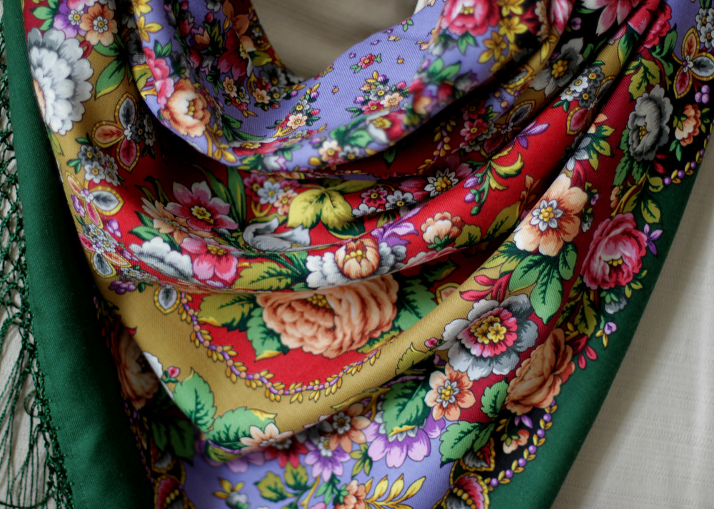 Девочки, спасибо за поздравления! С приездом платочков у меня был праздник! Очень хотела Луговые маки, думала, что не найду. А платок ждал меня в Торжке в магазине. Моя тверская фея туда поехала за Листьями, а нашла еще и абсолютно неожиданные Маки. На Парк Гуэль я робко надеялась, а он лежал спокойненько в Твери. Кстати, его расцветка для меня стала несколько неожиданной: фото на форуме показывали бирюзовую кайму, а она, у моего во всяком случае, самая что ни на есть зеленая.