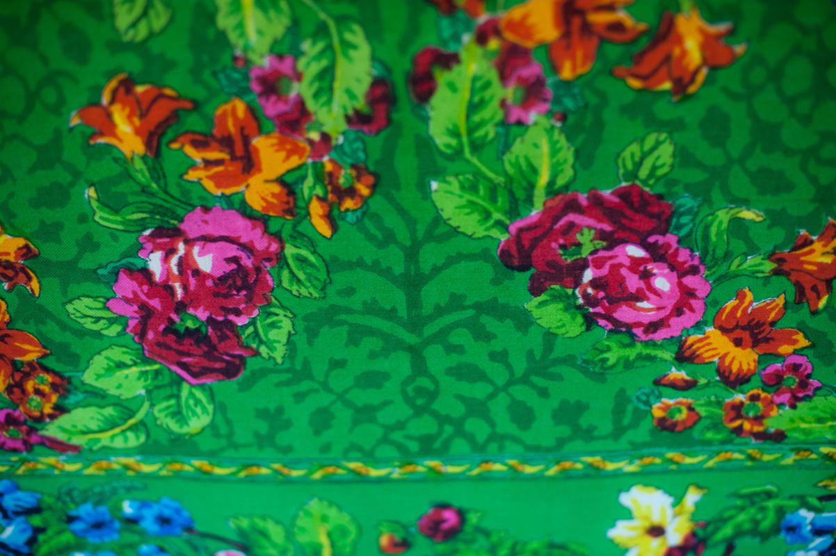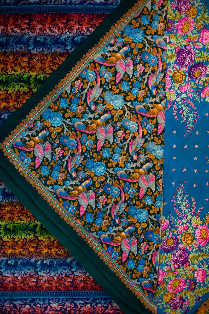 Шали и покрывала, представленные на этом стенде, выполнены на Ленской фабрике. Такое название в 1921 году получила одна из 5 текстильных фабрик Павловского Посада - бывшая фабрика Абрамовых.