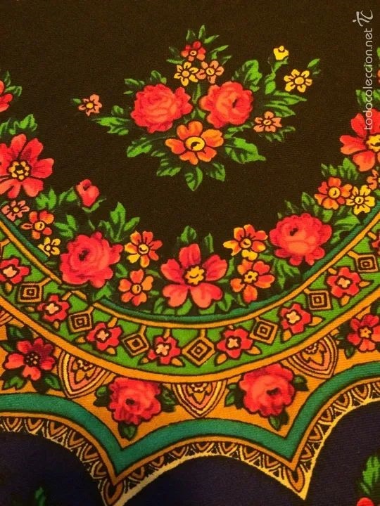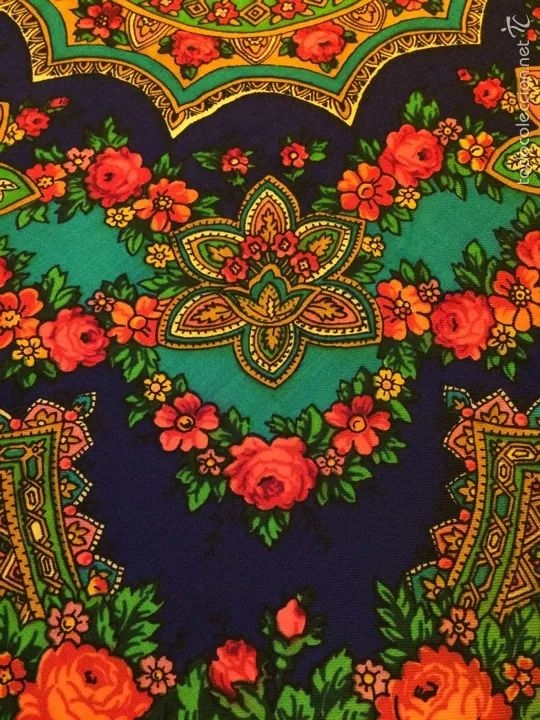 Старая шерстяная шаль с яркими цветами
