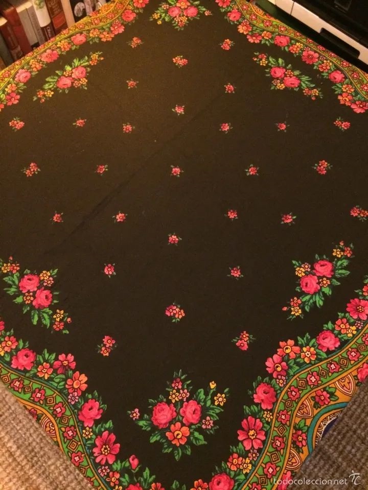 Шаль черная с многоцветным рисунком из Испании (Леон)