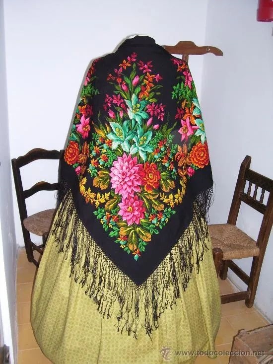 Шаль черная с многоцветным рисунком из Испании (Леон)