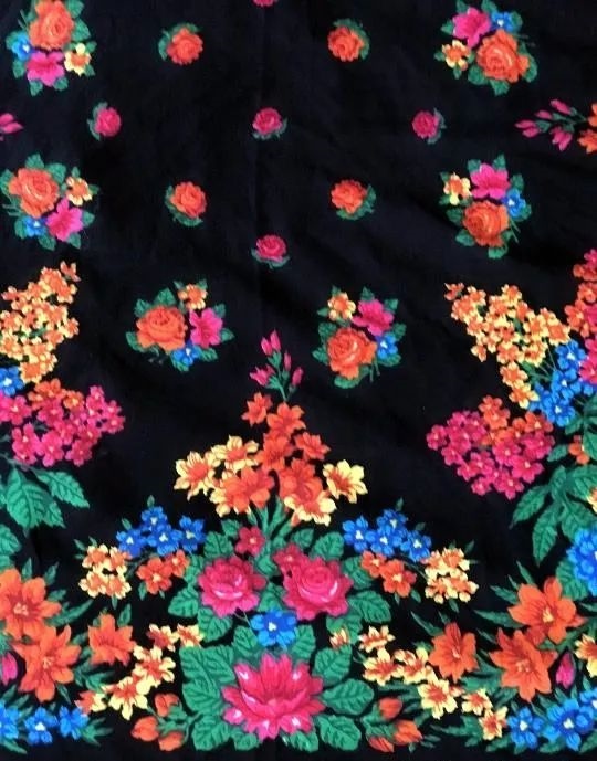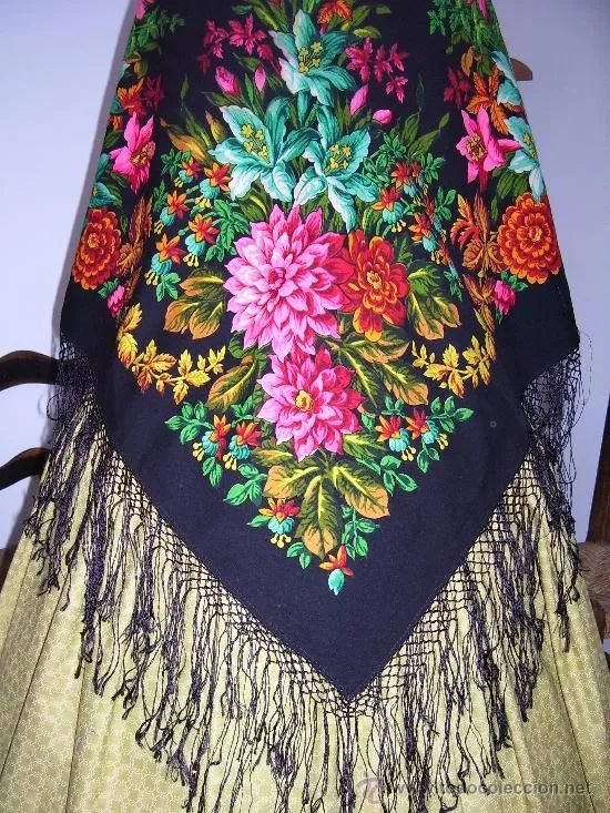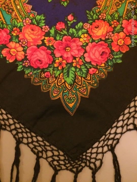 Шаль черная с многоцветным рисунком из Испании (Леон)