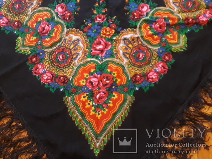 Шаль черная с многоцветным рисунком из Испании (Леон)