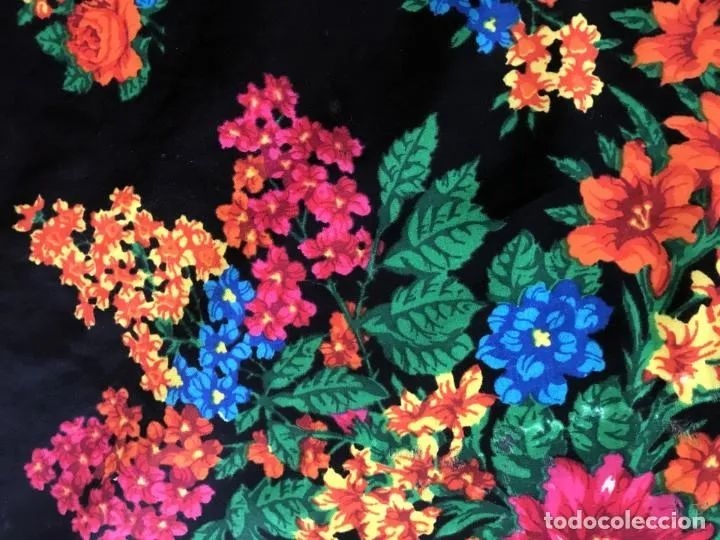 Шаль черная с многоцветным рисунком из Испании (Леон)