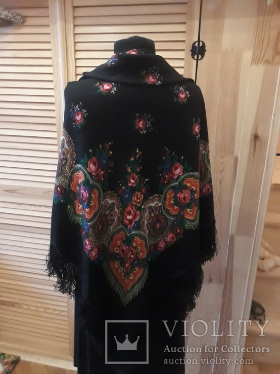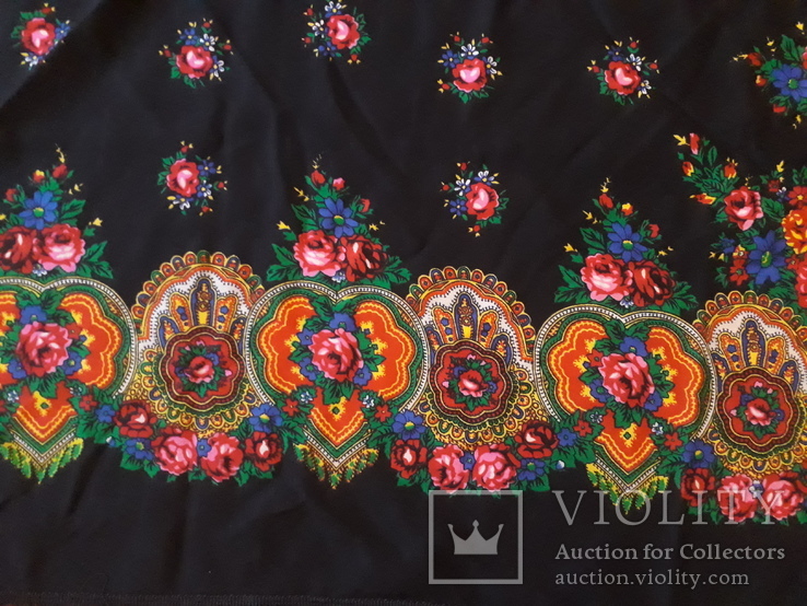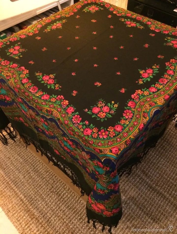 Шаль черная с многоцветным рисунком из Испании (Леон)