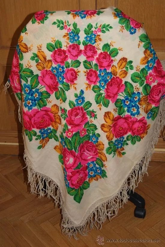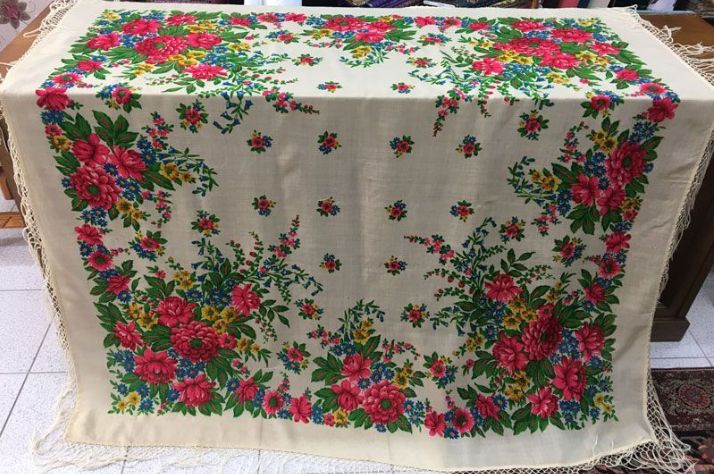 Старая шерстяная шаль с яркими цветами