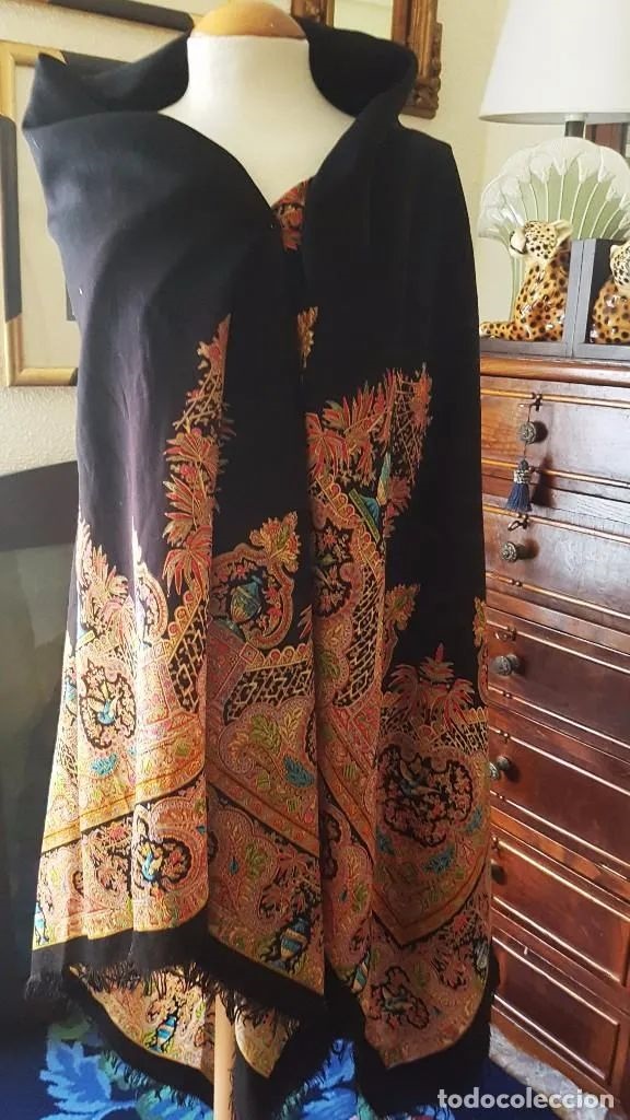 Старинная мериносовая набивная шаль