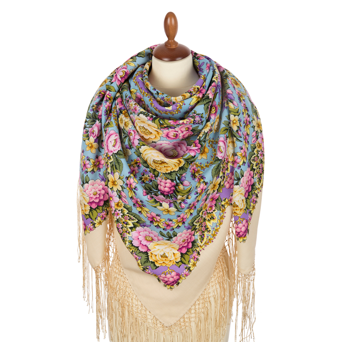 Платок шерстяной с шелковой бахромой, 146x146 см