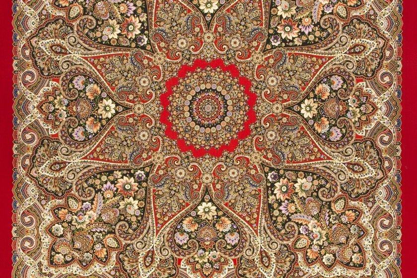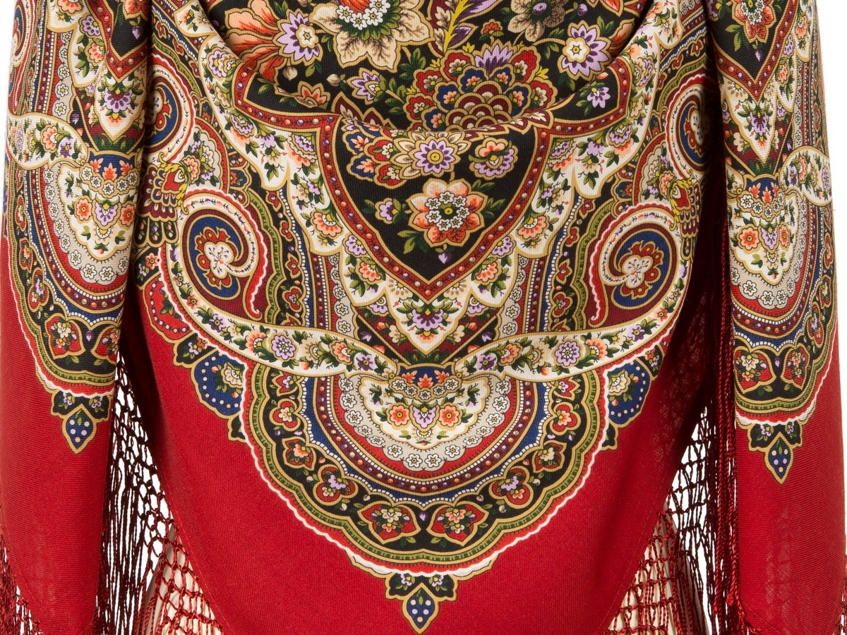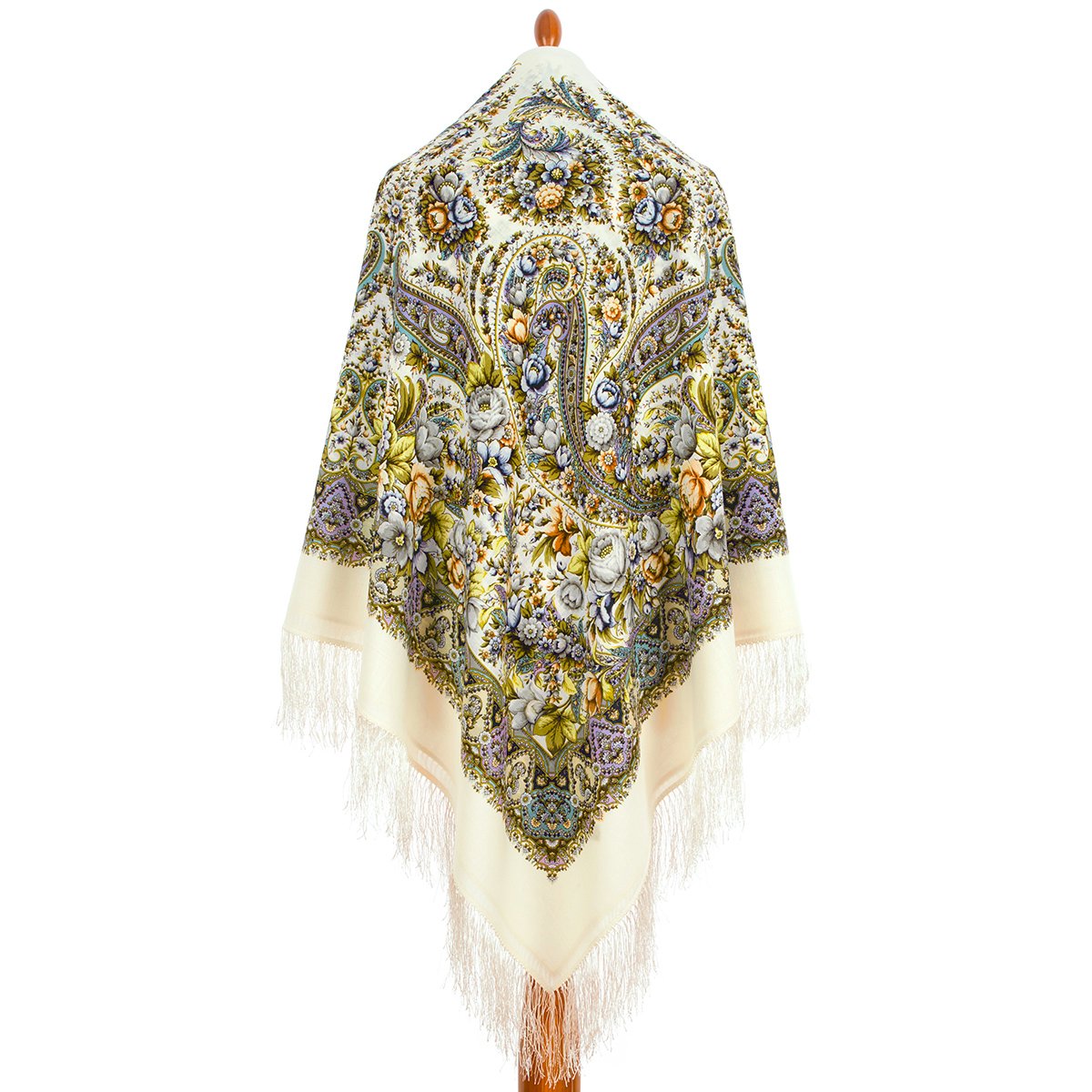 Платок шерстяной с шелковой бахромой, 146x146 см.