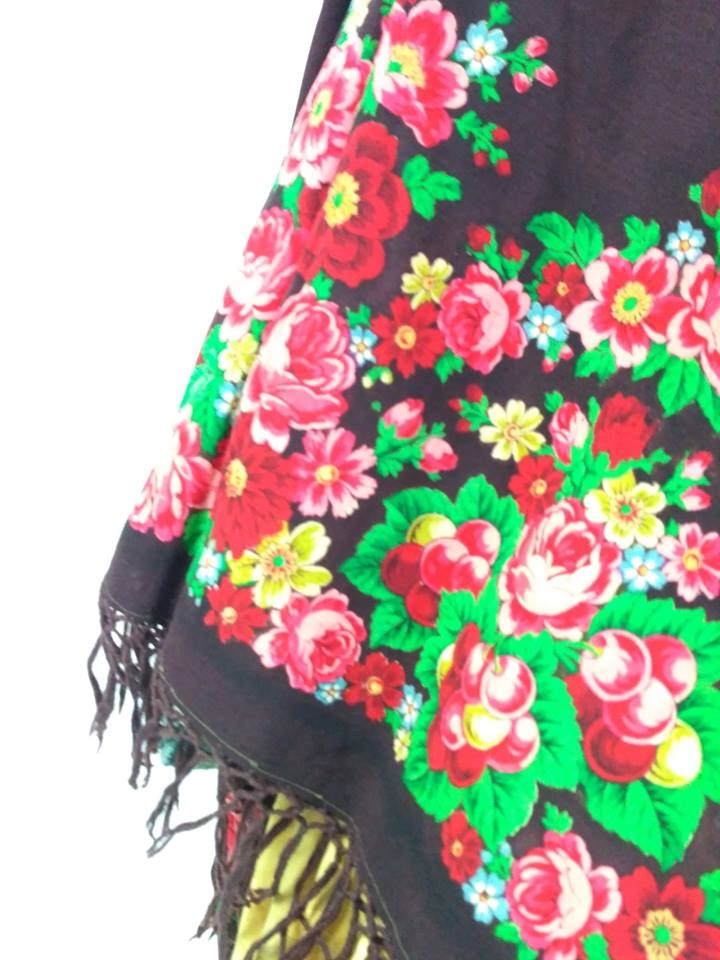 Старинный платок зеленой шерсти, набойка цветами, снова из Альканьиса