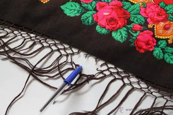 Очень знакомая шаль, но найти в архиве не смогла, а бахрому такую обычно вижу на старых хлопковых шалях.