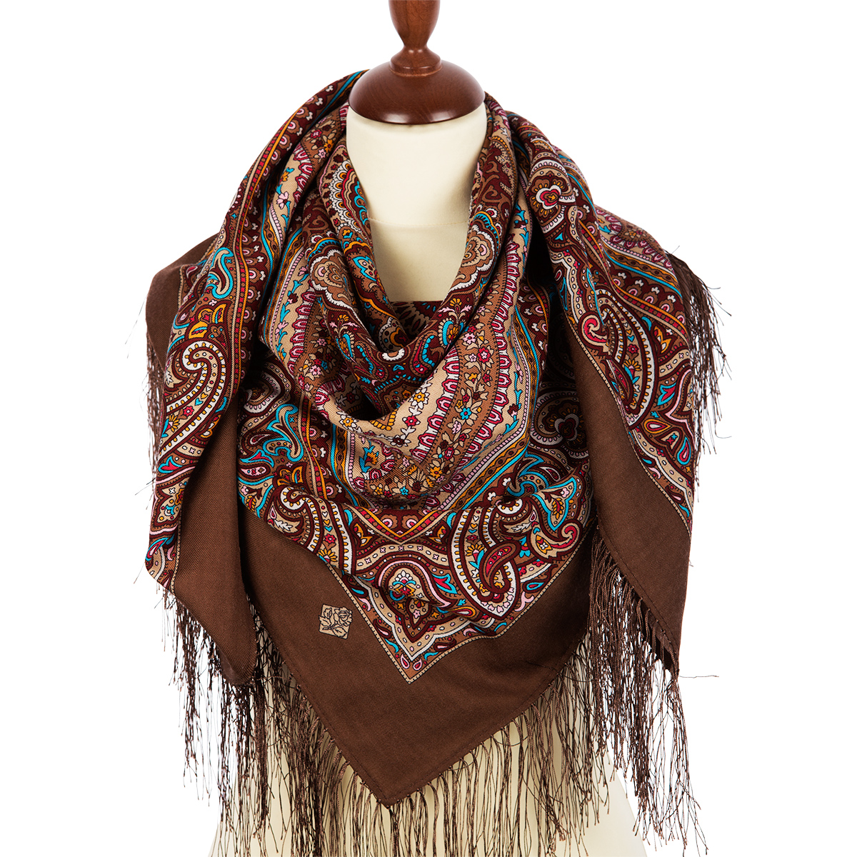 Сначала выпускался с простой шерстяной бахромой, позже с простой вискозной.