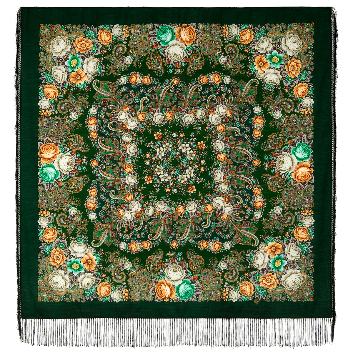 Платок шерстяной с шелковой бахромой, 125х125 см, выпуск 2019 г.