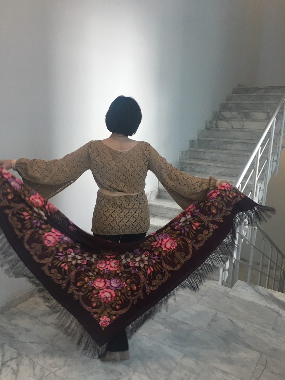 Демонстрируем ношение платков и шалей.