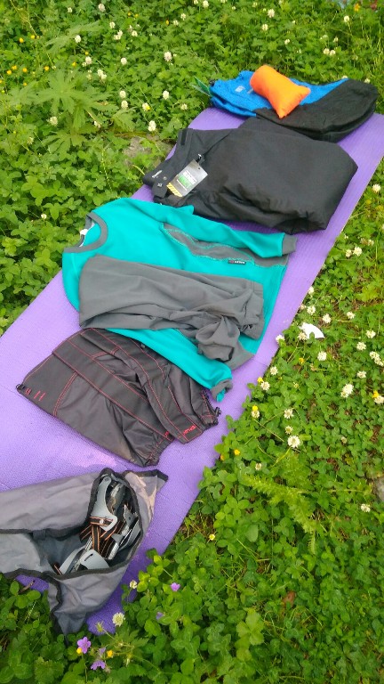 Погода уже была нелётная и нелетняя. Я, дрожа на открытых скалах под колючим ветром, частично разделась, чтобы надеть "всё лучшее сразу", и только когда на ногах появились двое теплых штанов, а в ботинках - теплые носки, настроение улучшилось и я точно смогла утверждать, что горняшки никакой у меня нет. Очень кстати было то, что заранее сверху я положила нужные шмотки, так как ветер играючи вырывал из рук абсолютно всё, то есть распаковать рюкзак до дна не было возможности.