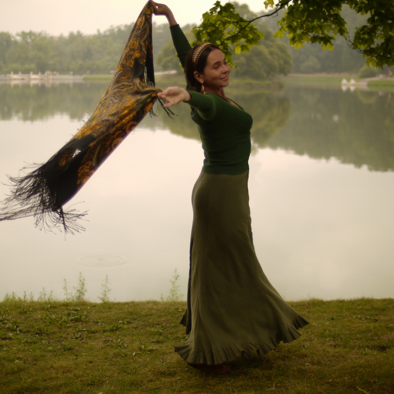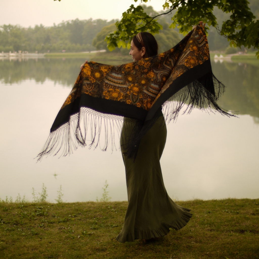 Понимаю, что ,наверное, слишком необычно... Поняла этот уже по реакции прохожих. Прошу прощения, если вдруг у кого-то вызвала беспокойство и тревогу негуманным обращением с платком :>> Каюсь! Но жажда эксперимента оказалась сильнее!...Ах!...