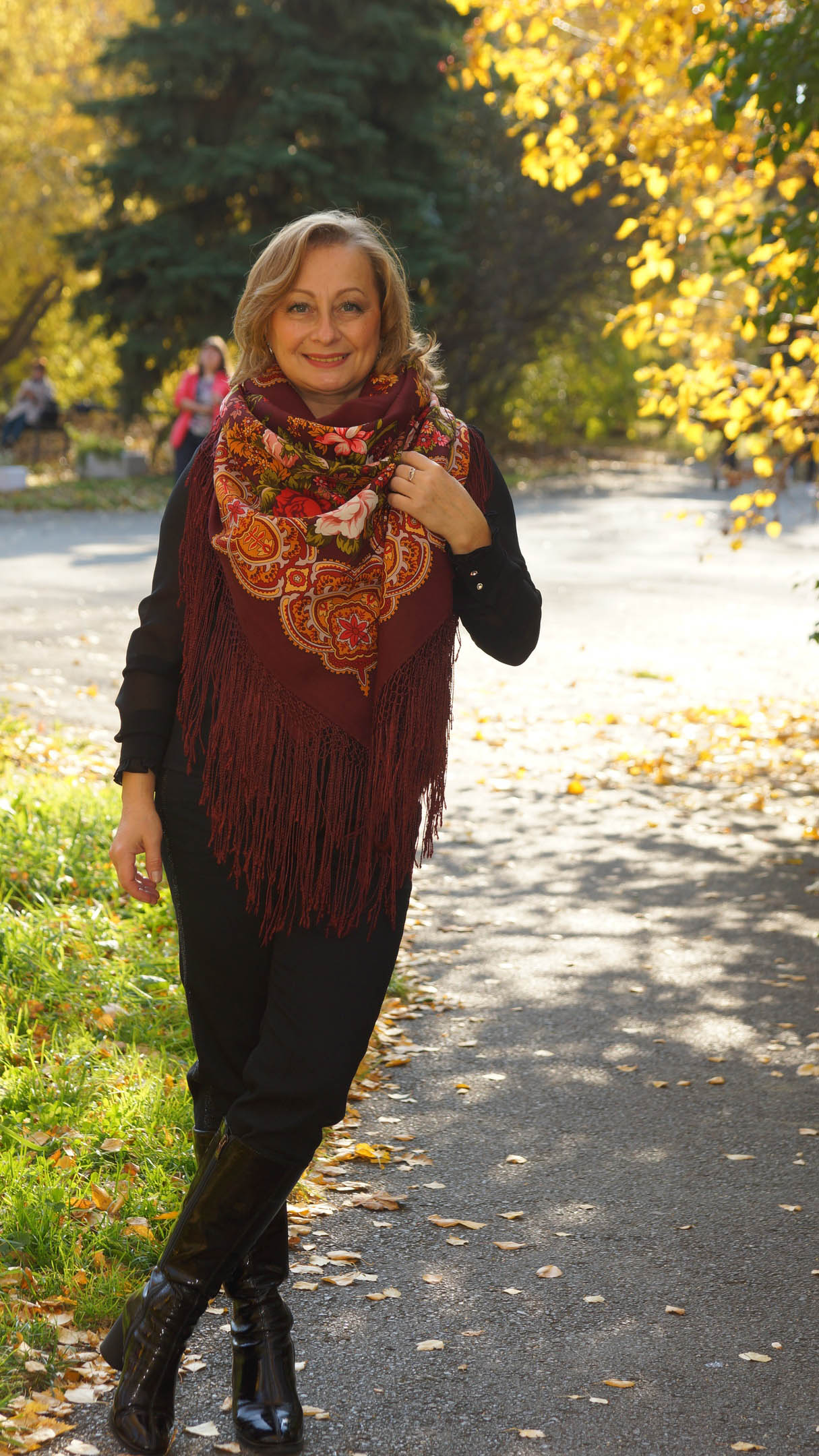 Светлана Вигорова писал(а):приехала Наталья с сумкой сокровищ, кто угадает платочек на шее, тот ас, не меньше.