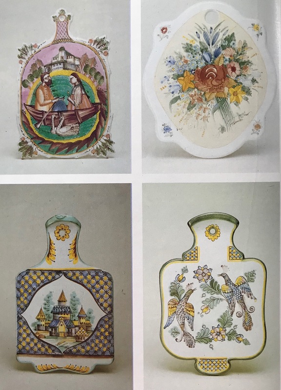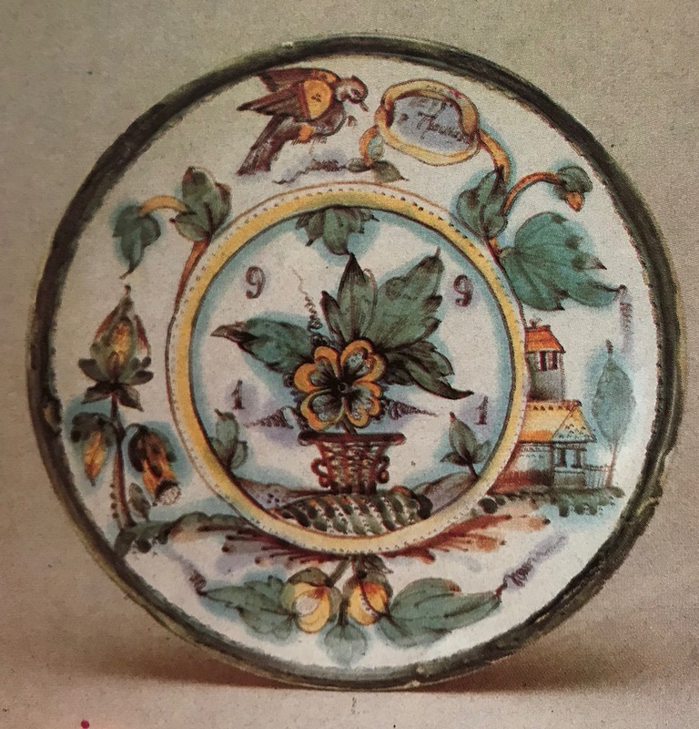 В майолике XVIII века пейзаж был навеян миниатюрой, иконописью, поэтому появились сказочные храмы и терема. Художники 70-80 г , прошлого века создают современное прочтение искусства того времени--интересное направление майоликовой росписи. Объектом их внимания становятся уголки деревенских улочек, небольшие церквушки сел.