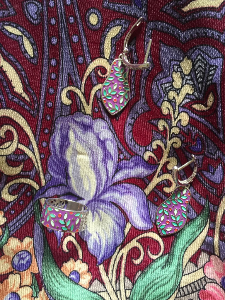Eva, комплект крупный, размер 3 см х 3,5см. Мне подарили, куплен у вас в Москве где-то на выставке. На себе покажу позже. Мне трудно угодить с подарком, но этот комплект понравился ,приятный и экстравагантный