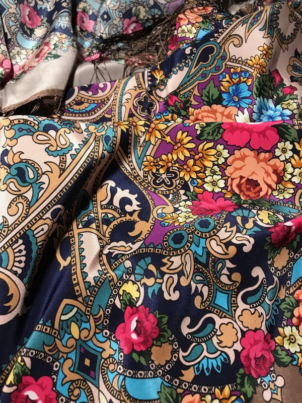Теперь вижу, я далеко не одинока. Все-все нравится . Эмоциональный взрыв какой-то по впечатлении от кружевного синего, т.е. красного, т.е. розового и так далее. Винтажные розы с трафаретным эффектом. Все сочетания цветов мною любимые в одном отдельно взятом платке. Очень люблю посуду, с такими рисунками моего детства. А тут можно на себя надеть. Супер.