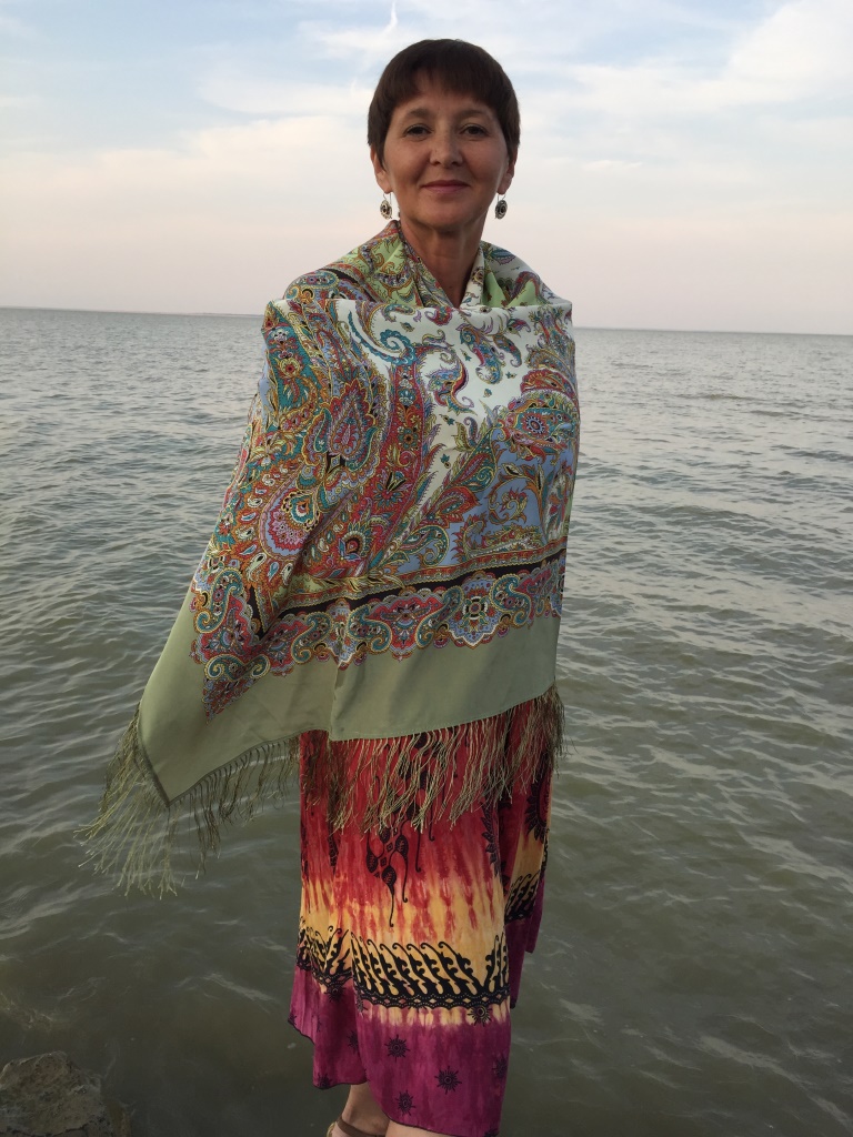 Универсальная шаль-хороша во всех колоритах! У меня пока только один( остальные в уме)))