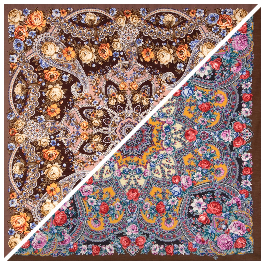 Платок шелковый (крепдешин, бахрома) "Великолепный век", вид 16, 130х130 см