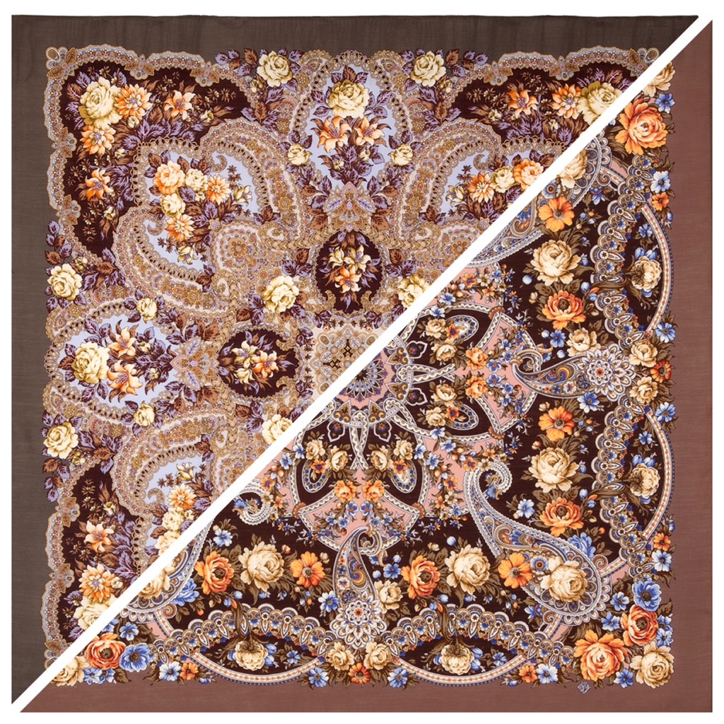 Платок шелковый (крепдешин, бахрома) "Великолепный век", вид 15, 130х130 см