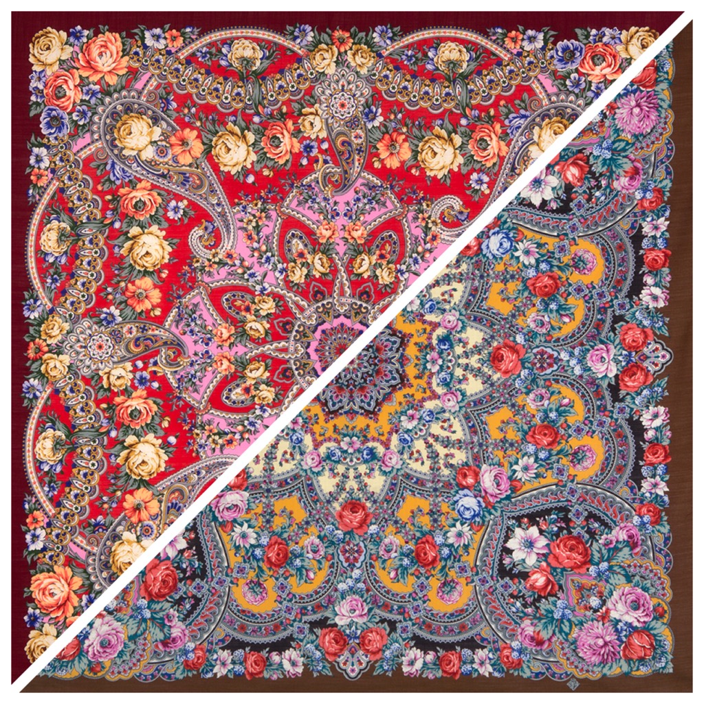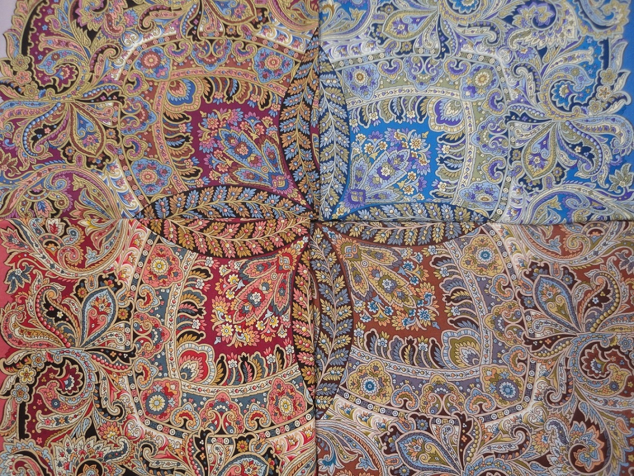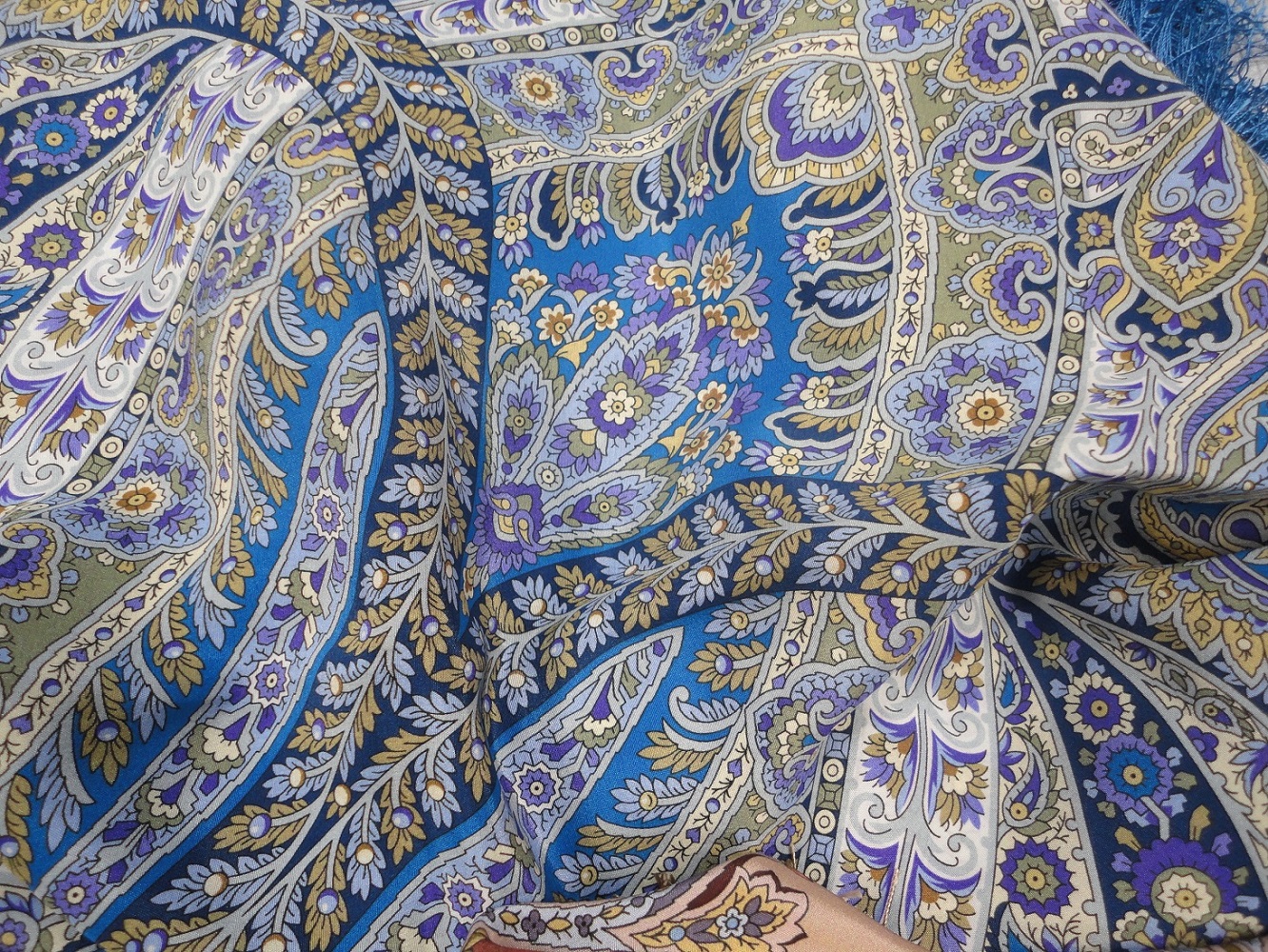 Платок шелковый (крепдешин, бахрома) "Великолепный век", вид 15,13,3,16, 130х130 см